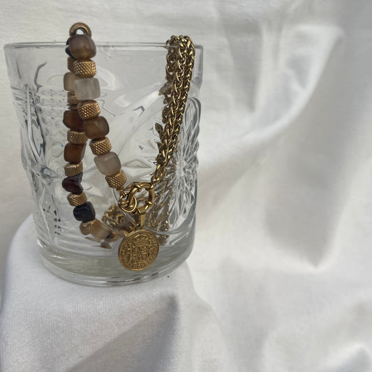 J'utilise des perles de qualité (perles semi précieuses, perles d'eau douce, perles de Tahiti, perles en céramique) que j'allie à des métaux (acier inoxydable/ plaqué or) pour que vos bijoux résistent au temps