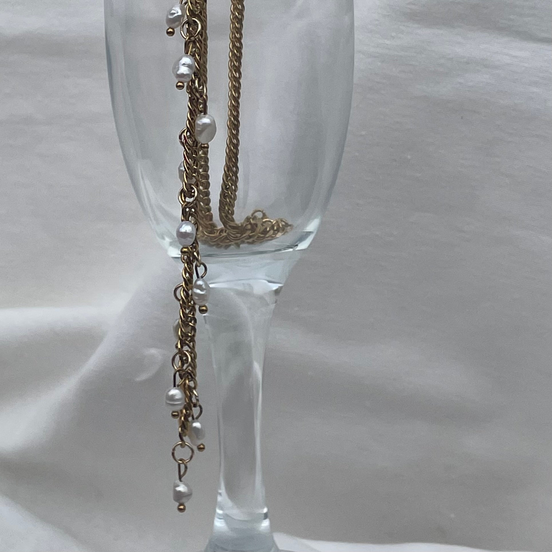 Un collier plongeant élégant et délicatement ponctué de perles d’eau douce. Il combine douceur et éclat, comme un clin d’œil aux bijoux discrets que portaient nos mamies les jours de fête.